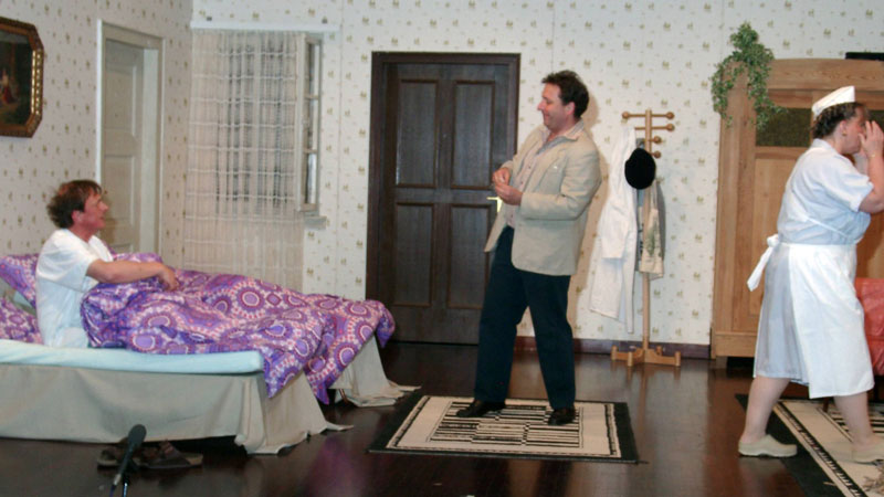 Schnelles Handeln ist gefragt, Rudi schafft es, in einem unbeobachteten Augenblick die Geliebte zu verstecken, und gemeinsam beschließt das Ehepaar, ihr trautes Heim in eine Irrenanstalt zu verwandeln. Die erste„ Patientin“ soll die eigene Tochter sein. Der Irrsinn nimmt seinen Lauf, als die Erbtante überraschend anreist, um sich persönlich von der “ Wohltätigkeit “ zu überzeugen.